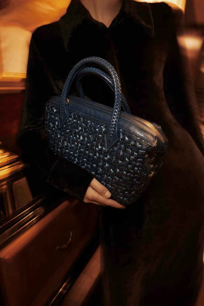 The smallest of our luxury bags in the Perriand line in our new Sapphire colourway. Exuding the same chic demeanor, but purposed for lighter days particularly when the transport of ancillary tech, like a laptop, isn’t required. Ideal for transitioning from day to evening events with a versatile design allowing it to be worn like a crossbody purse with the detachable strap, or, as a handbag holding the hand-braided handles, or sliding them comfortably to sit on the shoulder.