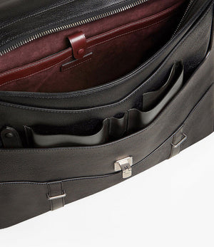 Handcrafted in Italy, the Rider Briefcase is a laid-back style with a classic satchel silhouette. Its streamlined exterior conceals an arsenal of interior organisational compartments, including a 14” laptop sleeve and dedicated pouches for your passport, wallet, keys and much more. A discreet panel in back transforms from an extra pocket into a trolley loop for travel. Finished with solid brass hardware and a detachable shoulder strap.